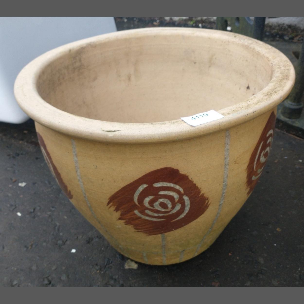 Garden planter with light brown background and brown flowers W38 x H30 x D38cm approx