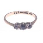 A 9ct and PLAT marked to the shank ring, with 3 dark coloured stones, largest 3mm, size P, gross weight 2.05g approx