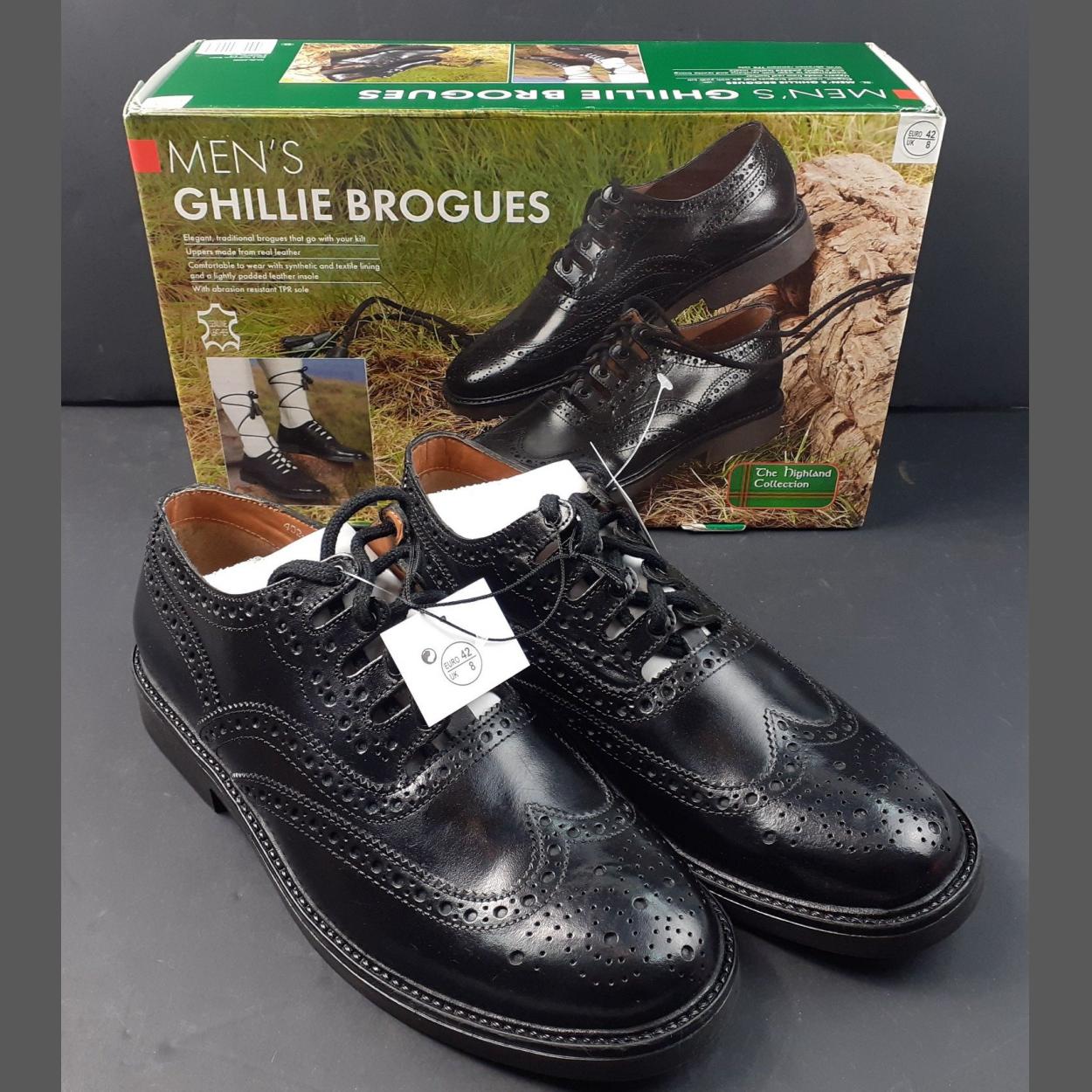 A pair of new in box HIGHLAND COLLECTION gent's GHILLIE BROGUES UK size 8, Eur 42, in original box