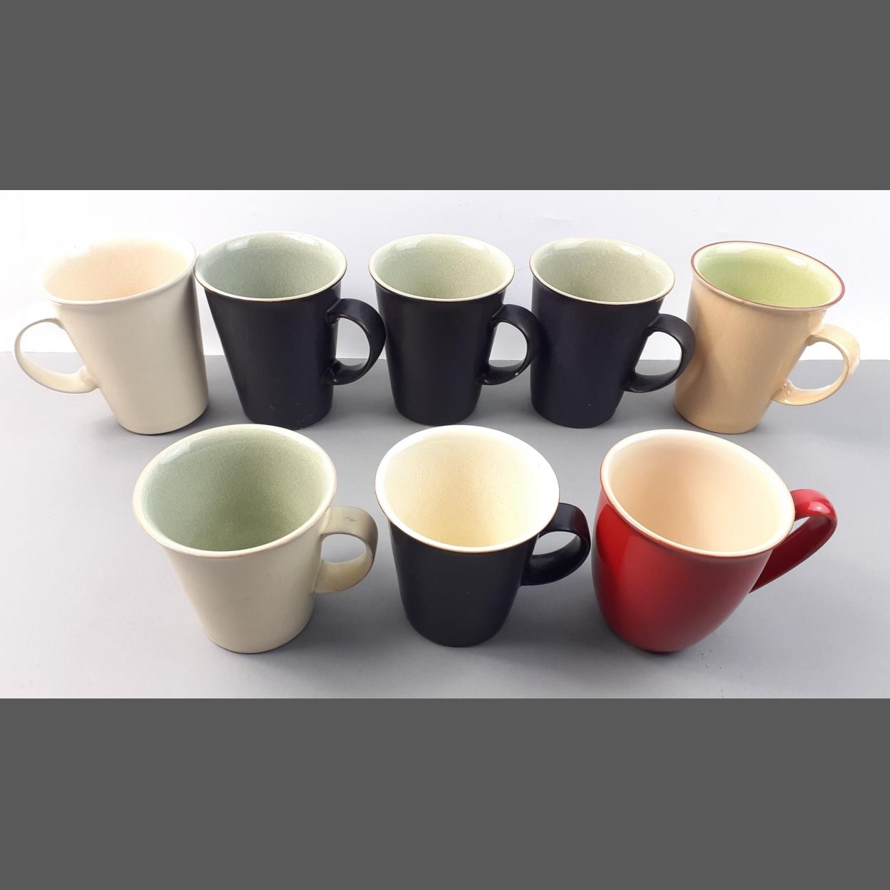 Five large DENBY mugs of assorted colours plus 3 smaller