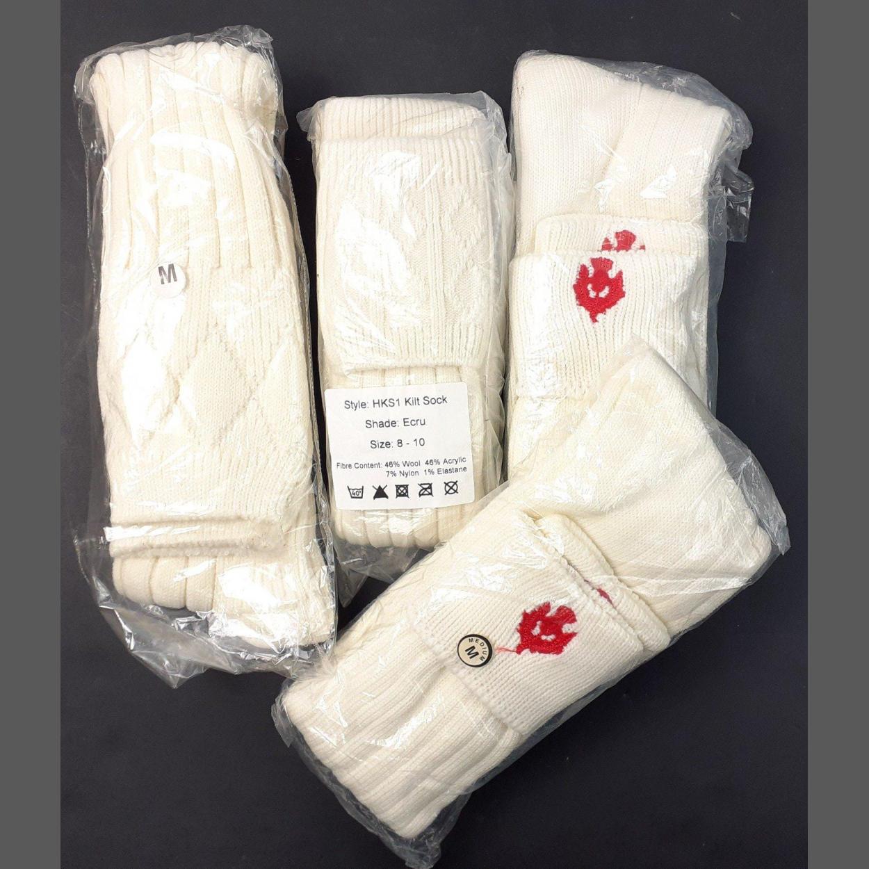 Four new pairs of highland hose size medium, 2 pairs with red thistles