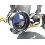 A mixed lot to include a travelling case with glasses, two Limoges marked lidded pin dishes, a candle stand and a set of Frank-Nipole Charles Frank 10 x 5 binoculars in case and in good condition.