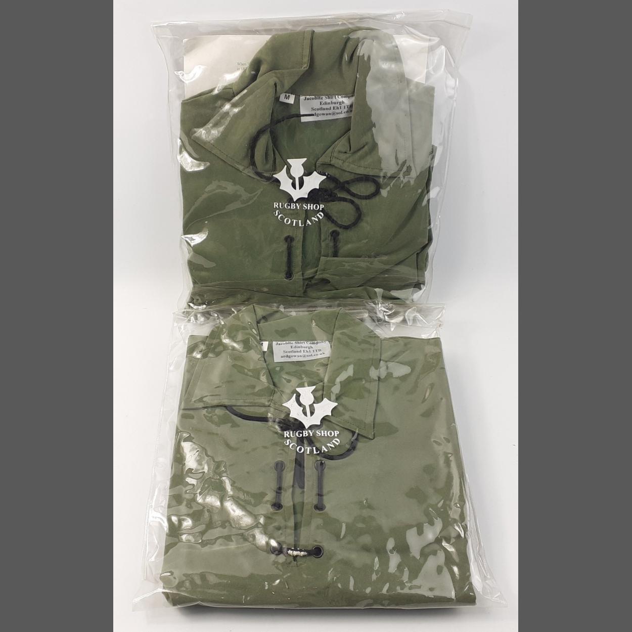 Two new, in packaging, khaki Jacobite shirts size medium from the Jacobite Shirts Company of Edinbur