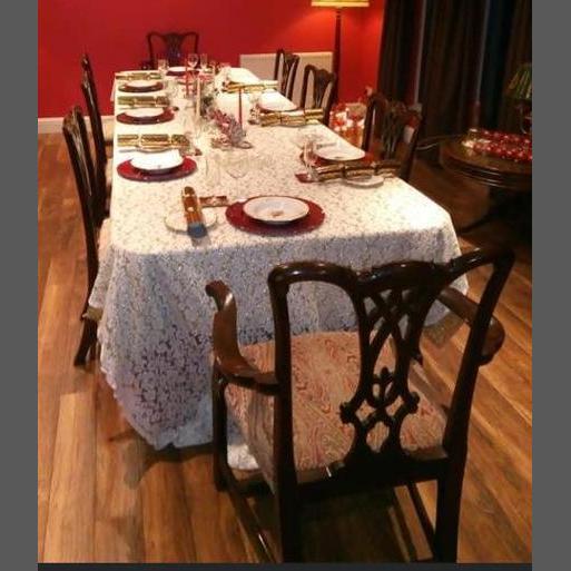 Large 12ft (including extensions) dining table with three extension leaves and six CHIPPENDALE INSPIRED dining chairs & two impressive carver dining chairs, all recovered around a year ago, table without extension leaves 7ft in length approx