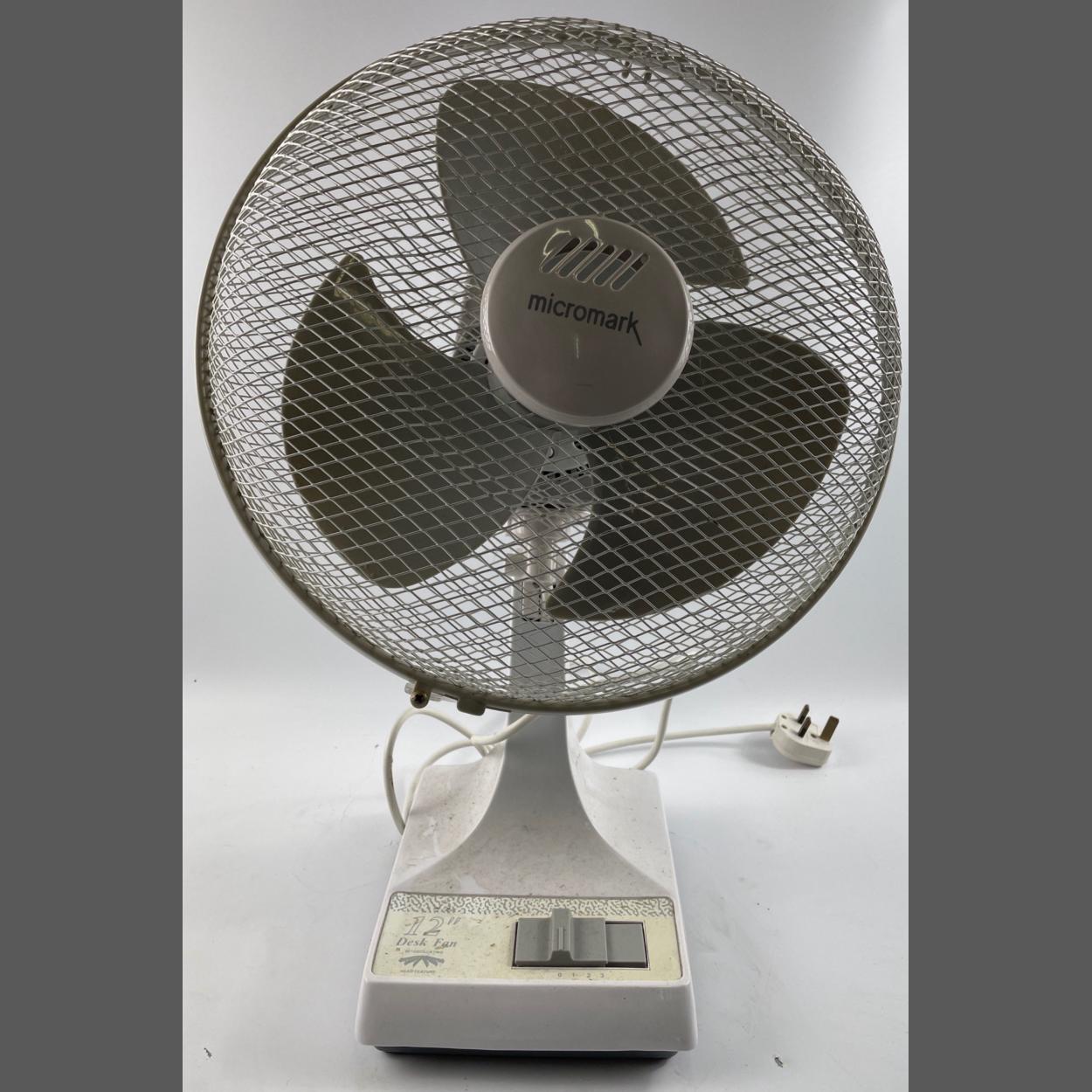An electric 12" oscillating DESK FAN with multi-speed function.
