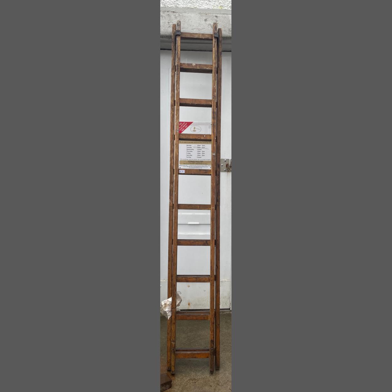 A vintage wooden set of 9 step ladders extending a further 9 steps (18 steps in total)