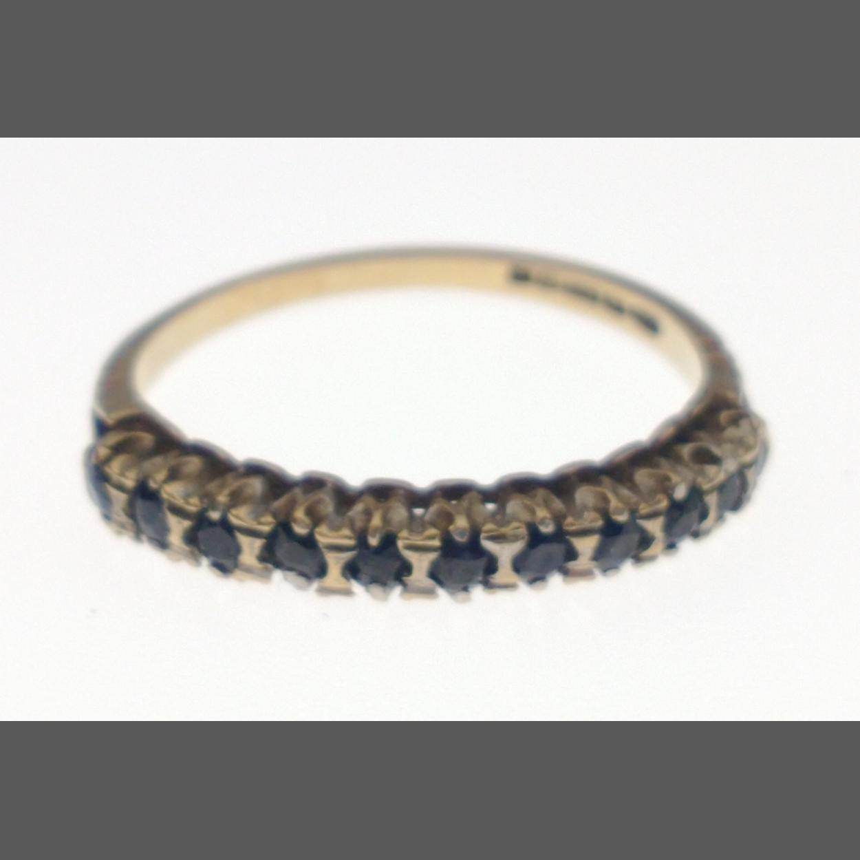375 hallmarked ring with 11 blue stones, gross weight 1.70g, size P