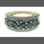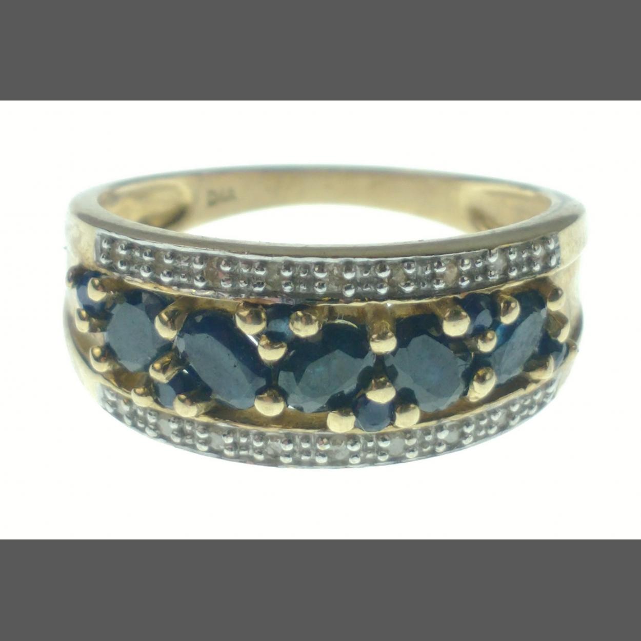 375 hallmarked ring with 5 blue stones and diamonds, gross weight 3.45g, Size P