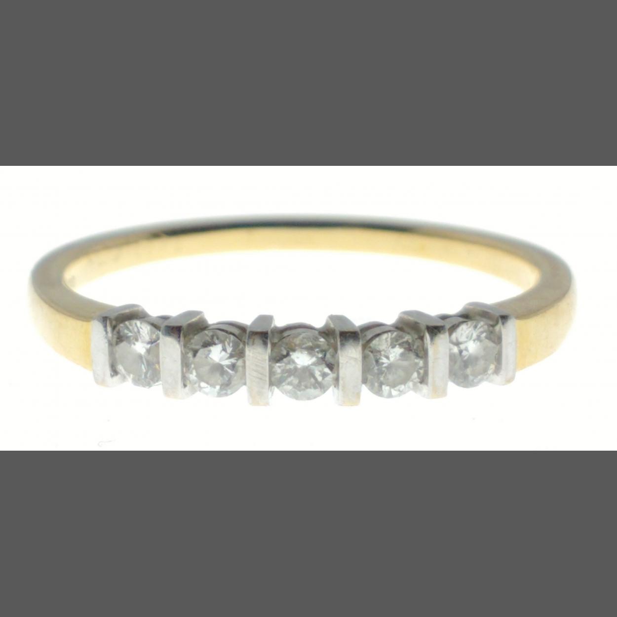A FABULOUS FIVE DIAMOND (Tested) set engagement ring 750 stamped 18ct gold 2.48g gross approx ring size P