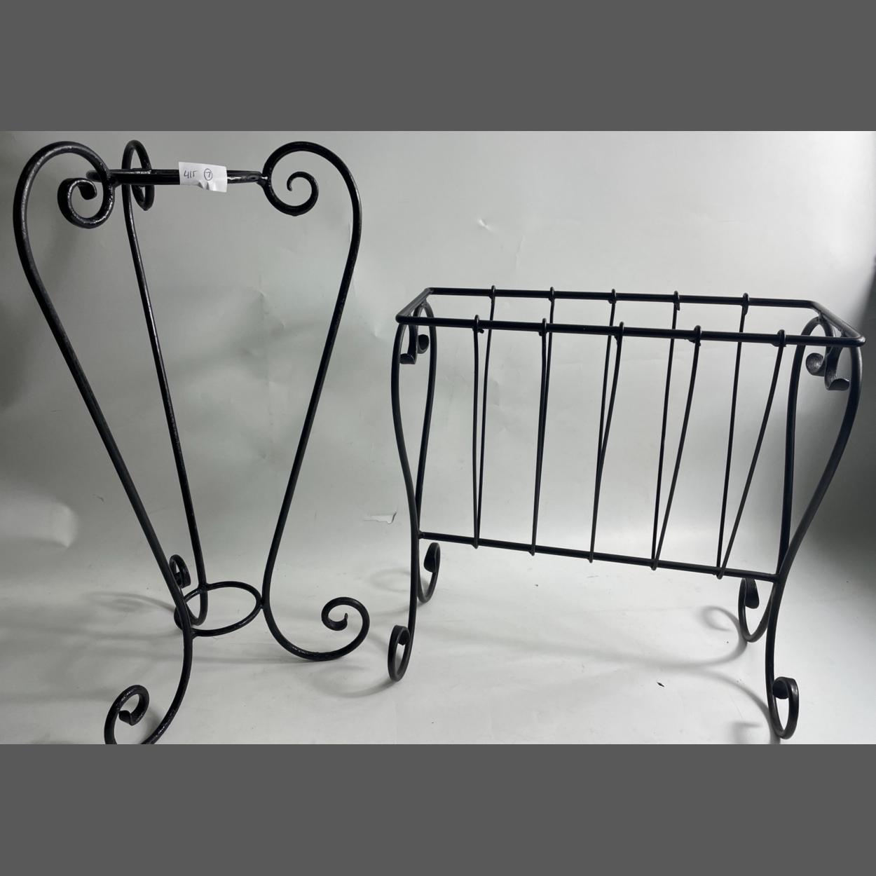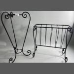 A black painted metal work plant stand 1.5ft tall, with also a nice metal work magazine stand