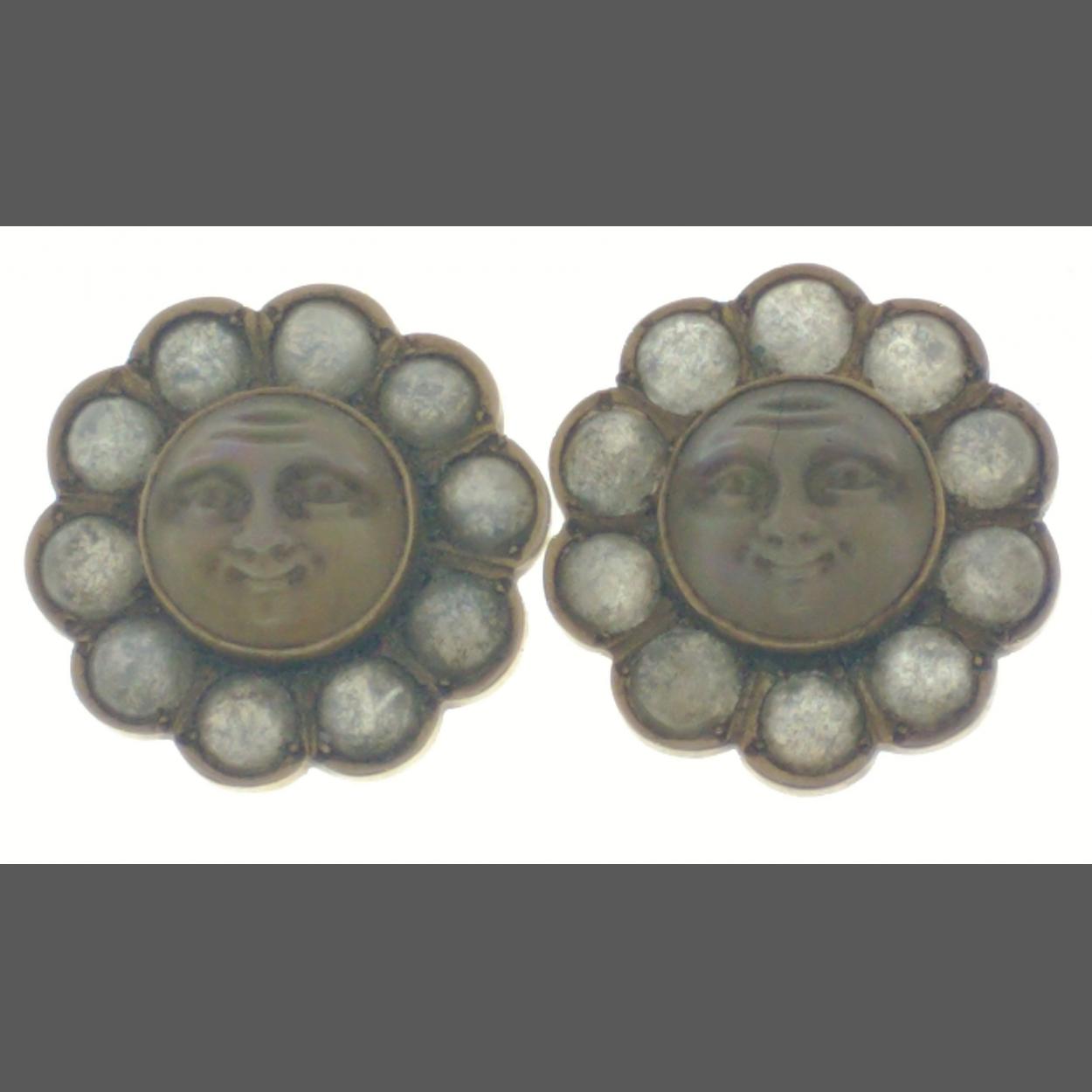 RARE & UNUSUAL!! GENTS CUFFLINKS 15ct stamped with a half crescent moon backing, with a really COOL 'MOON-FACE' set in larger opals surrounded by seed sized opals each 1.5cm diameter gross weight as a pair 6.70g