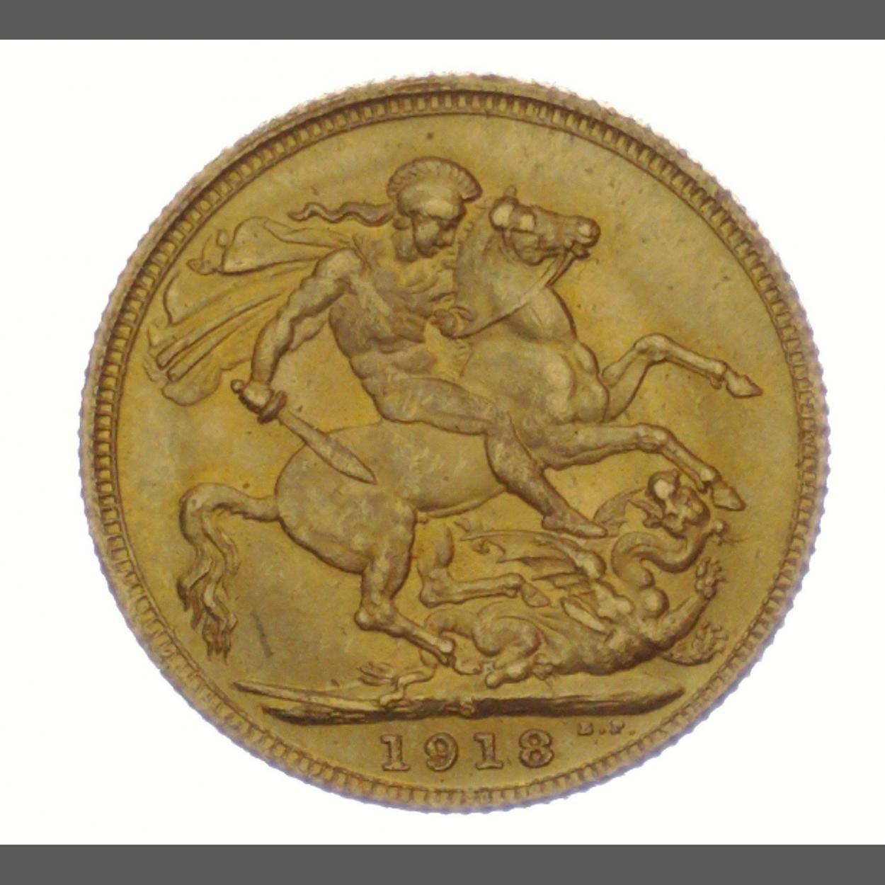 INVESTMENT COIN 1918 George V 22ct Gold Full Sovereign with S mint mark