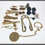 A MILLAN 14k stamped ORIENTAL key ring weight 8.2g, A DUNHILL stamped 'yellow metal' bank note-clip 10.2g weight, also a collection of mainly 'yellow metal' jewellery to include tie clips and cufflinks etc etc