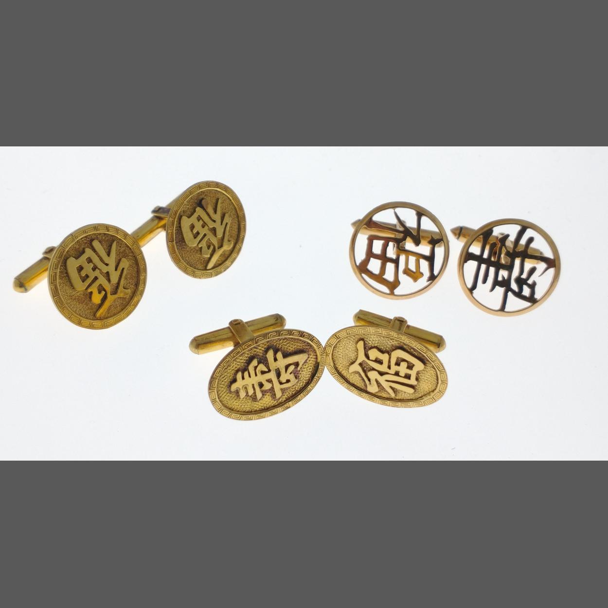 Three pairs of ORIENTAL 14k stamped CUFFLINKS weight gross purchased in The Orient.