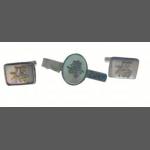 VINTAGE ORIENTAL! A STERLING stamped ORIENTAL design cufflinks and a similar tie-clip with Mother of Pearl weight 13.2g gross total