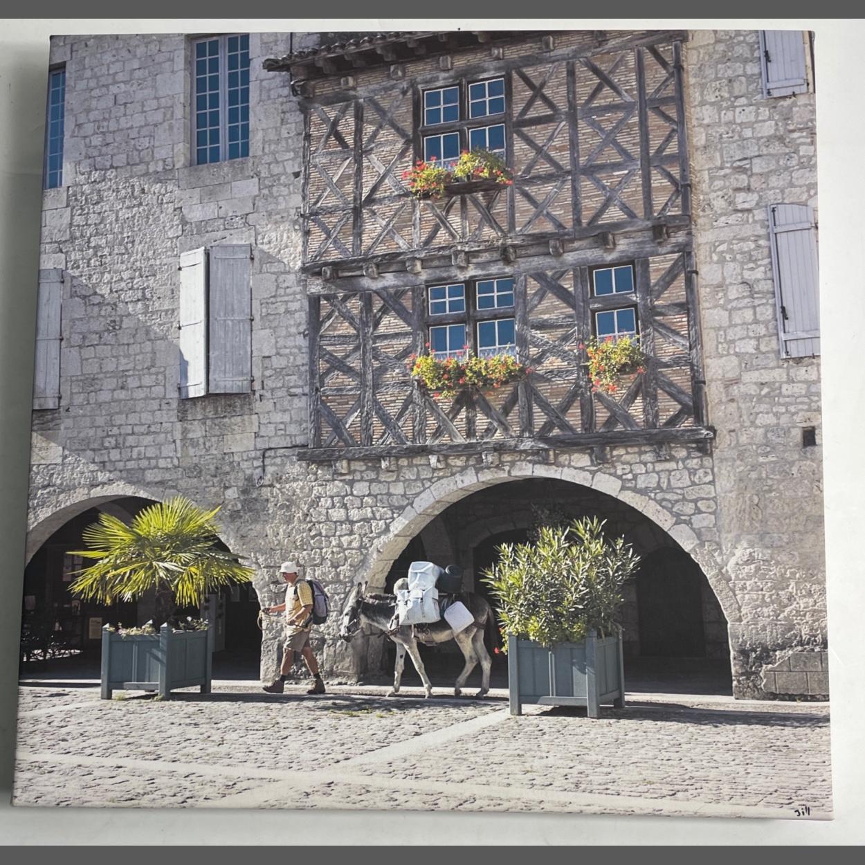 A striking photographic print (1 of 150) of Pilgrim/donkey, Via Podiensis, Lauzerte, Tarn-et-Garonne, France taken by JILL SWAINSON. 20 x 20"