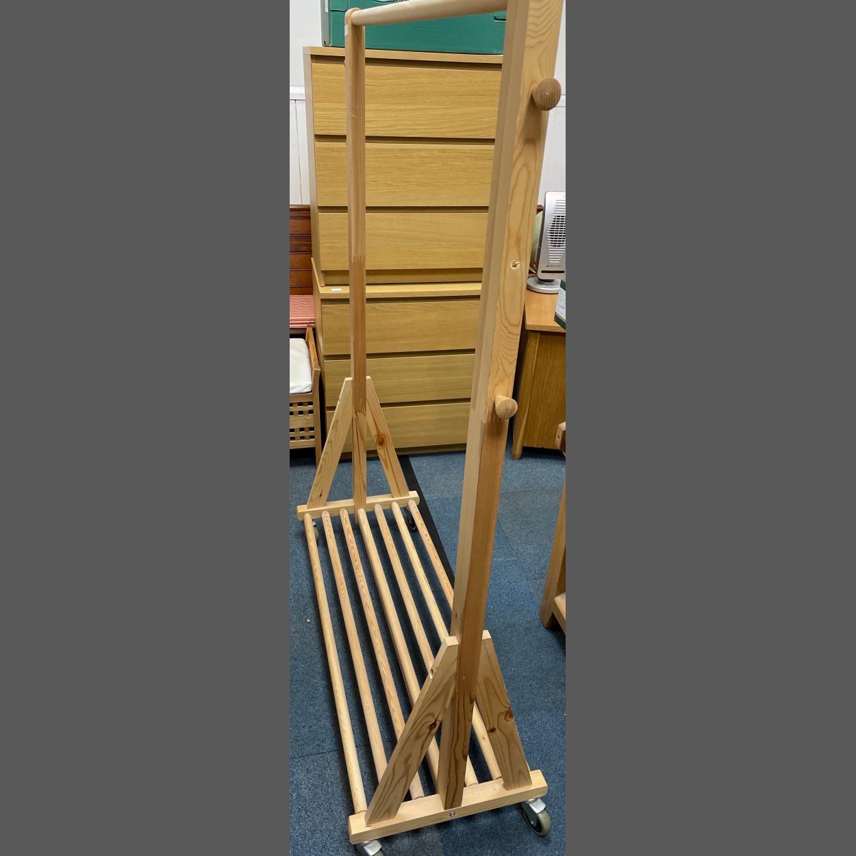 NICE QUALITY! A large portable clothes rack on wheels of wooden construction with base storage shelf 160cm long x 163cm tall