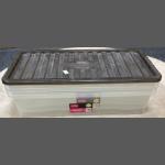 THREE LARGE plastic storage boxes with black and grey lids approx 1m long -cost a fortune new!!