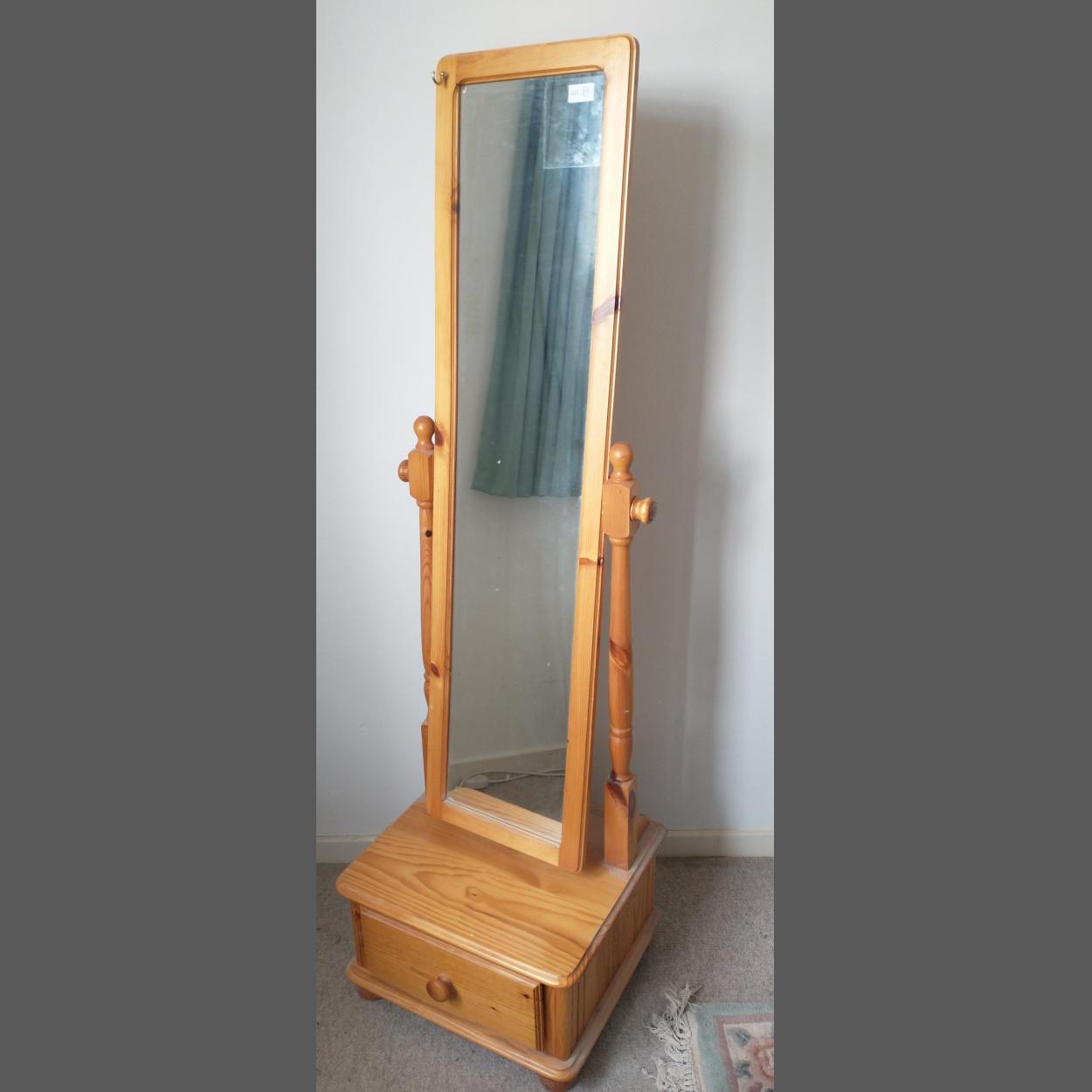 A CHEVAL Floor standing pine mirror with built in base drawer 155cm tall x width 45cm