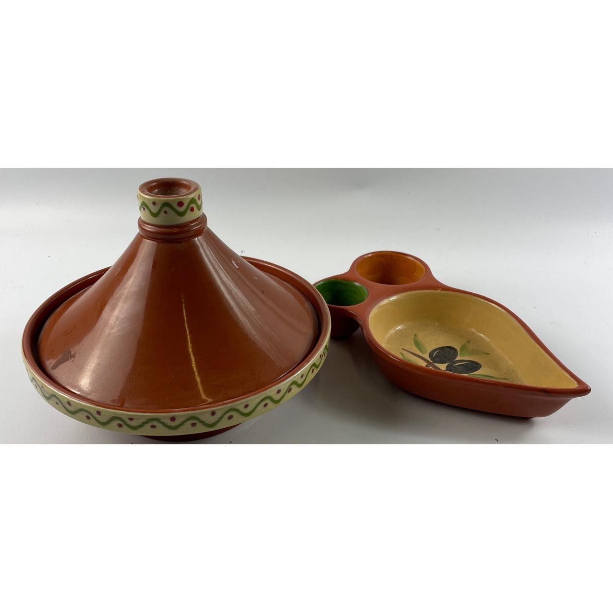 A small TAGINE plus a Portuguese serving dish for olive oil, balsamic vinegar and fresh crusty bread.