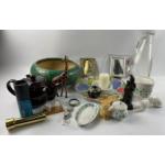 Mixed box to include a small DARTINGTON crystal vase standing 10cm tall, an unusual castle shaped plant holder etc.