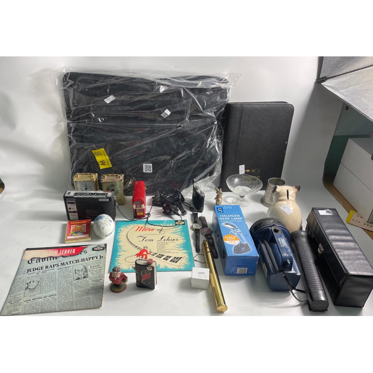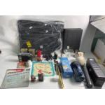 A mixed box to include a NEW set of car footwell mats, SONY WALKMAN, LUMIX camera, flashlight etc etc.