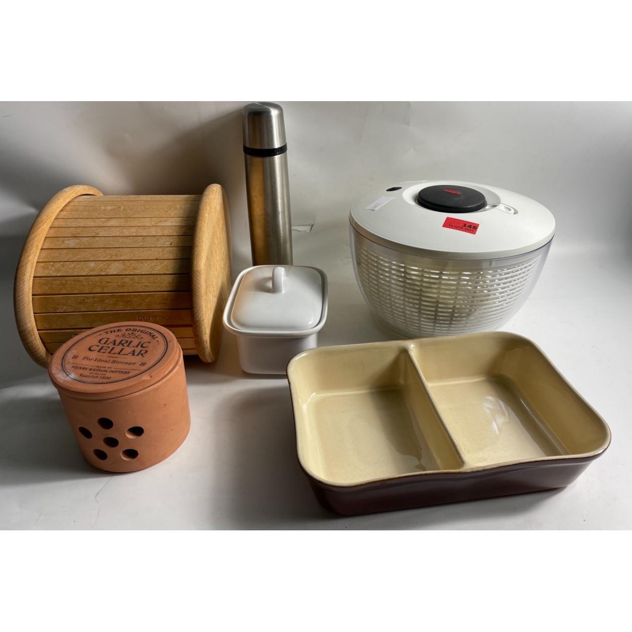 QUALITY KITCHEN LOT! to include small coffee maker, salad spinner, butter dish etc.