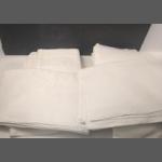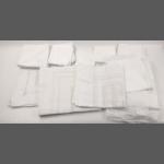 A dozen assorted pure white starched tablecloths, many damask. A top quality lot.