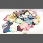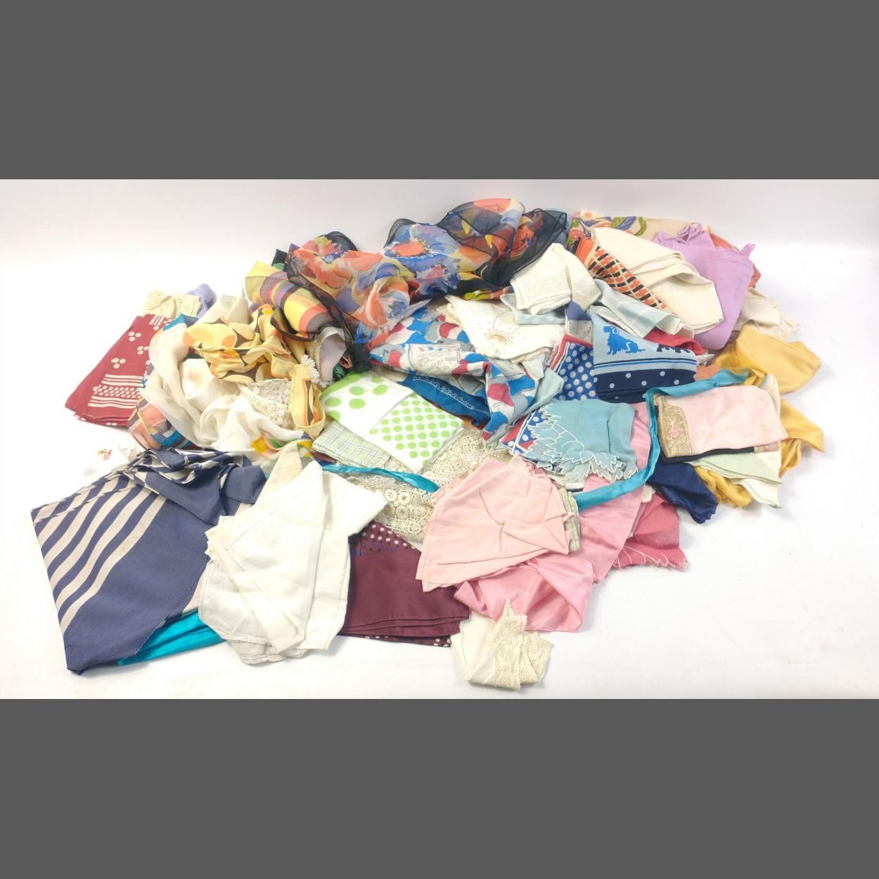 A bag full of assorted scarves and hankies, many silk and fine linen