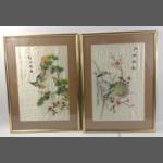 Two framed pictures embroidered on silk one of a bird of paradise frame size 54x40cm approx (portrait); the other of a peacock 54x40cm (landscape)