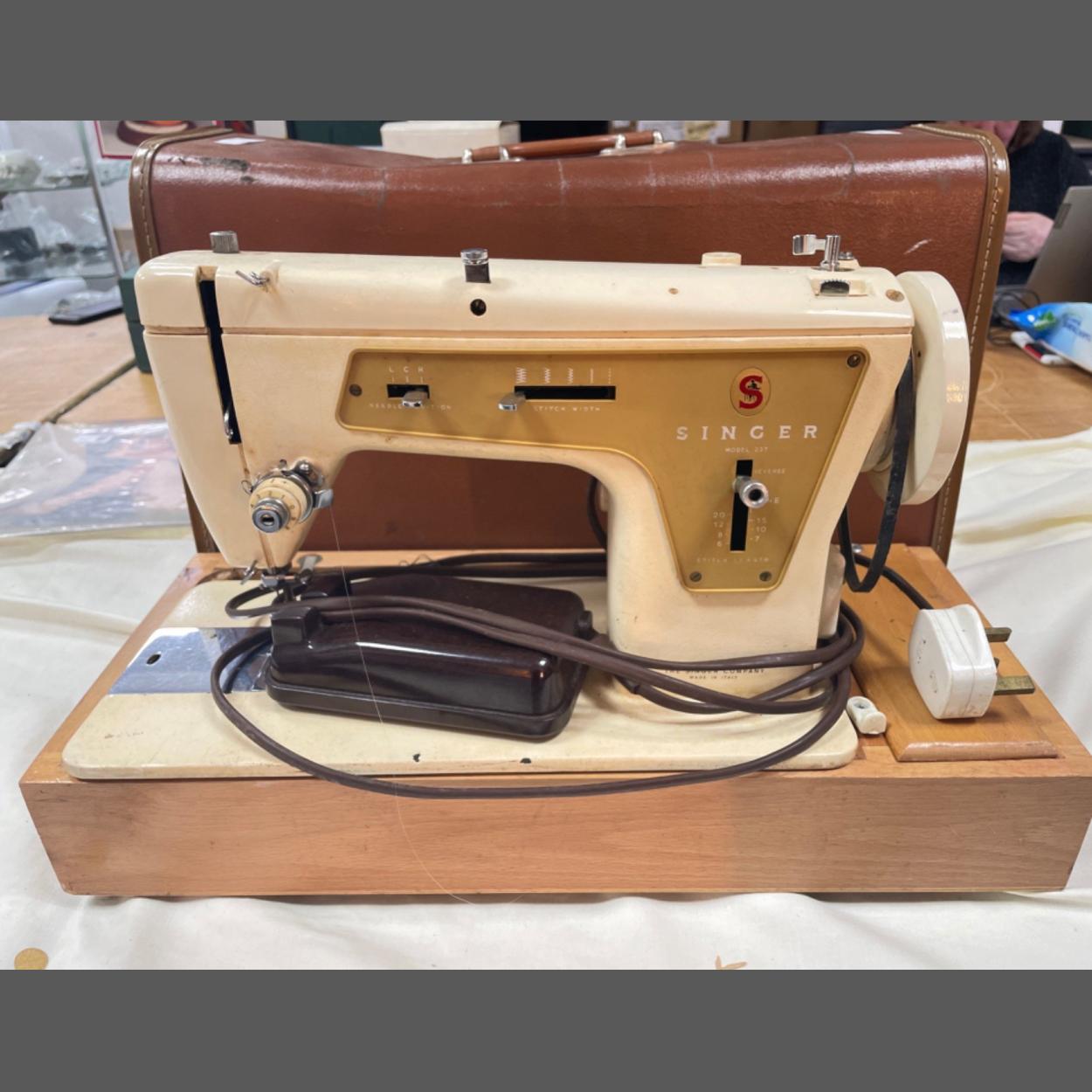 A vintage SINGER sewing machine model 237, made in Italy with carry case, needs some TLC