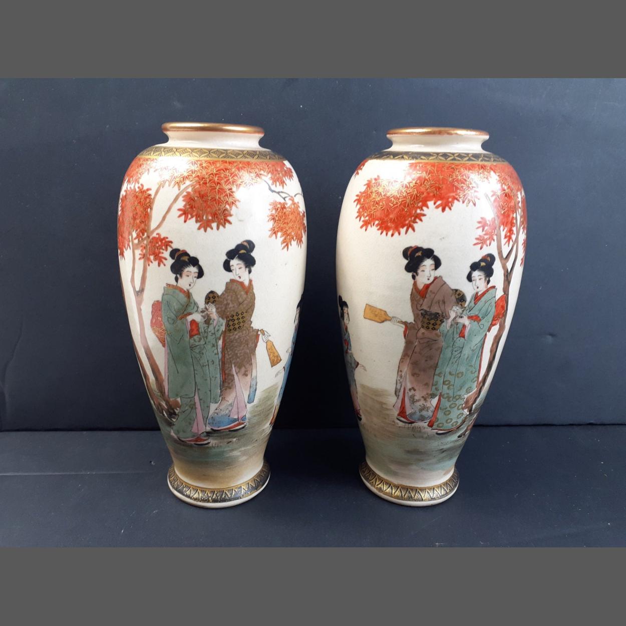 A pair of hand painted Japanese SATSUMA vases each standing 19cm high approx and both in excellent order.