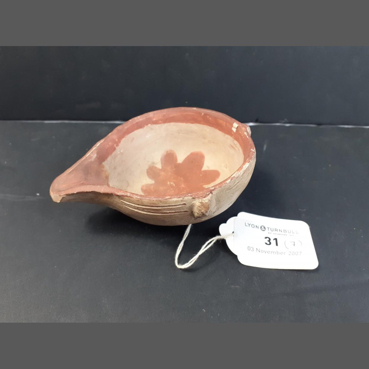 A small painted ROMAN wine taster or oils pourer. Measures 11cm approx and in good overall order. Bought by the vendor at Lyon & Turnbull in 2007 and retains the auction ticket.