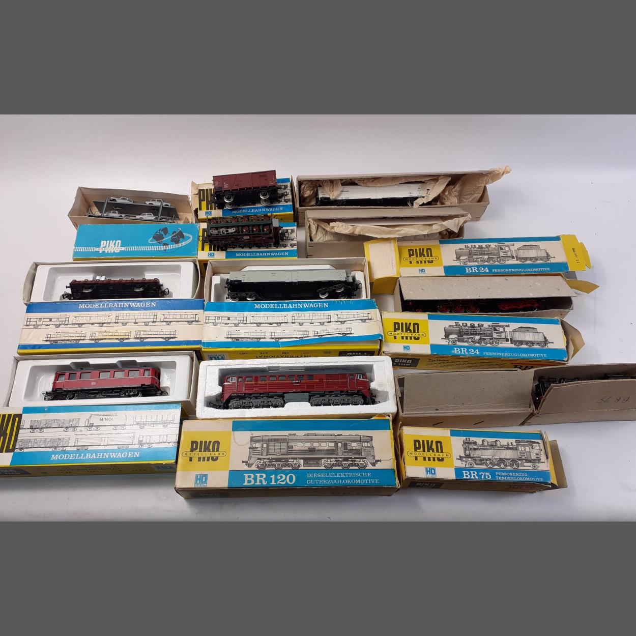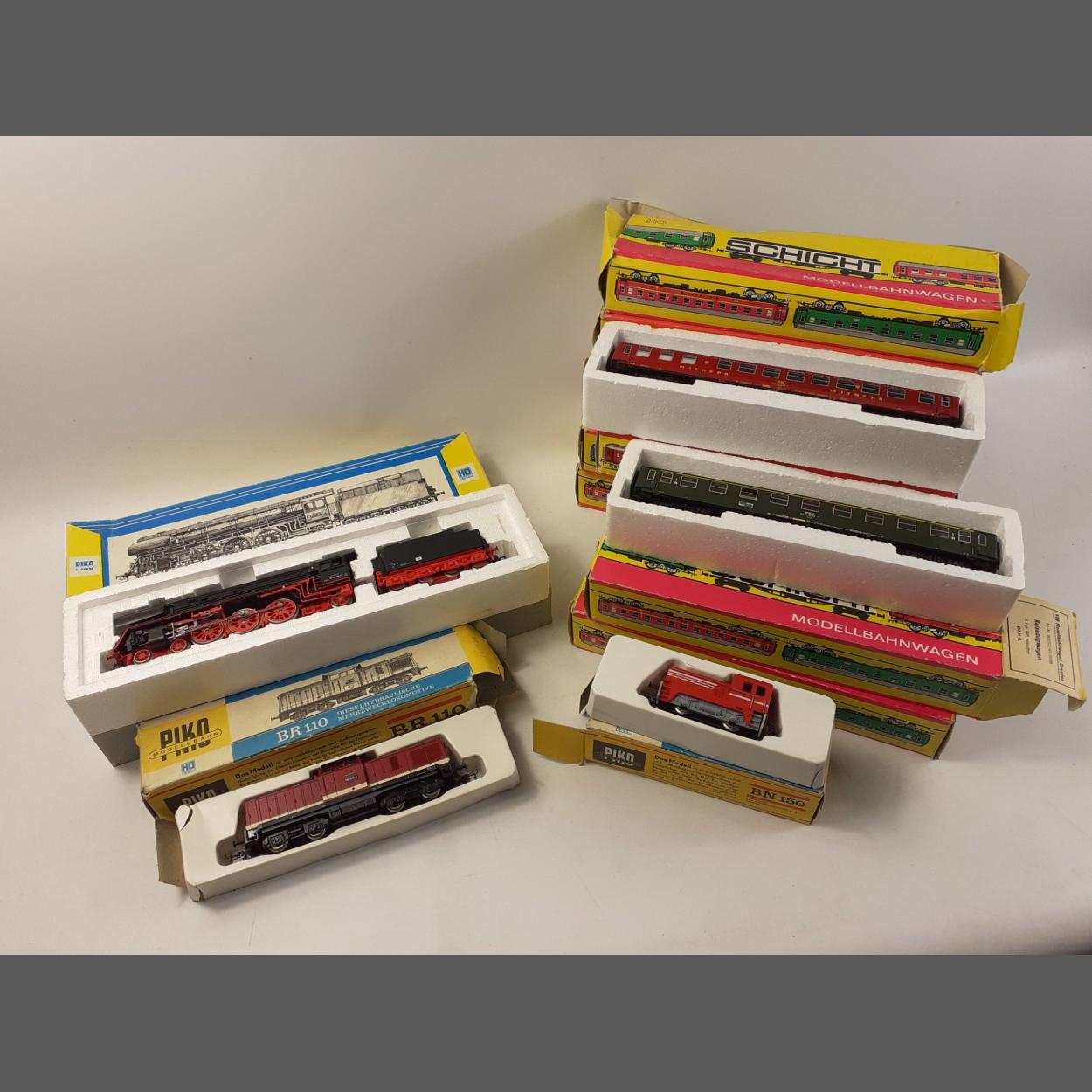 PIKO HO MODEL RAILWAY LOCOMOTIVE COLLECTION>. PIKO HO Scale German model railway LOCOMOTIVES and rolling stock to include PIKO BR24 locomotives 2 PIKO BR75 locomotives x2, PIKO BR120 locomotives and various carriages. All in previously run, used condition.