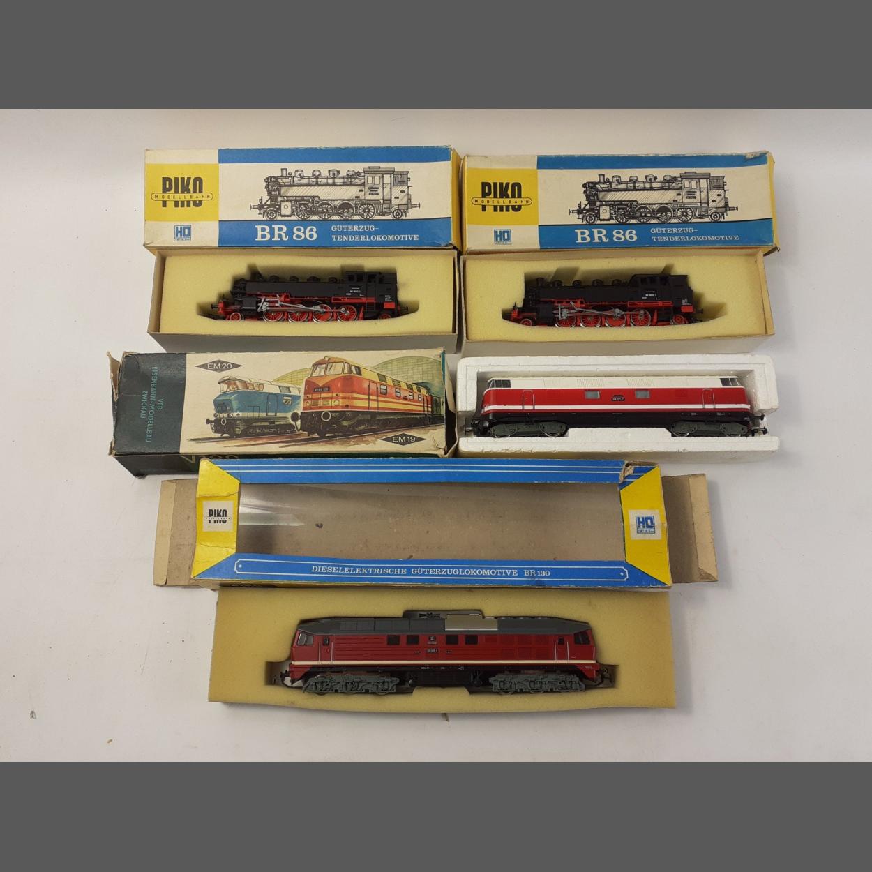 A super desirable lot of 4 German built HO model railway locomotives, includes PIKO BR86 Locomotives x2, PIKO BR130 Diesel Electric, a V180 EM20 Diesel Loco. All boxed and previously run.