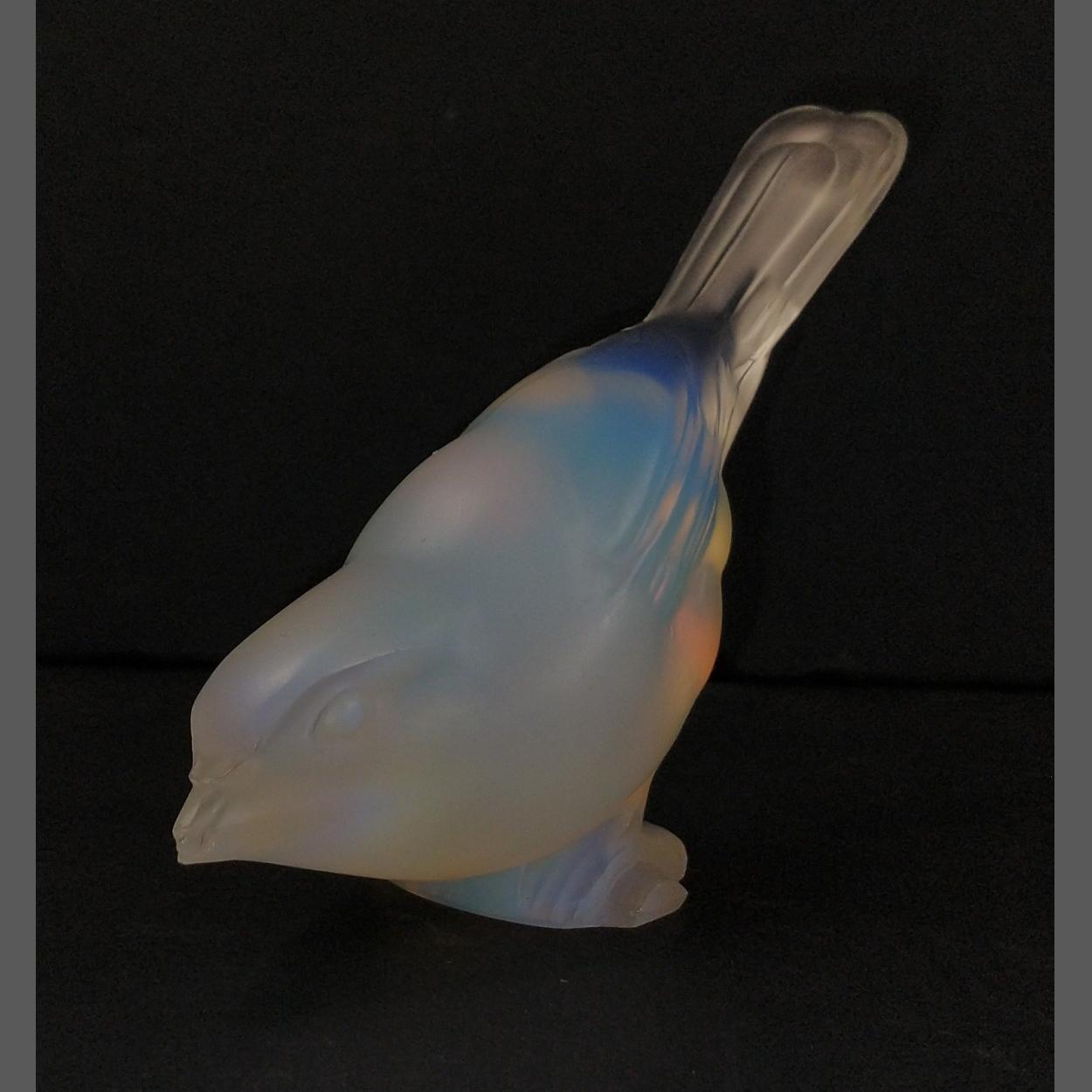 A small ETLING sparrow eating, 13cm long, 9cm high, a small chip from the beak and base