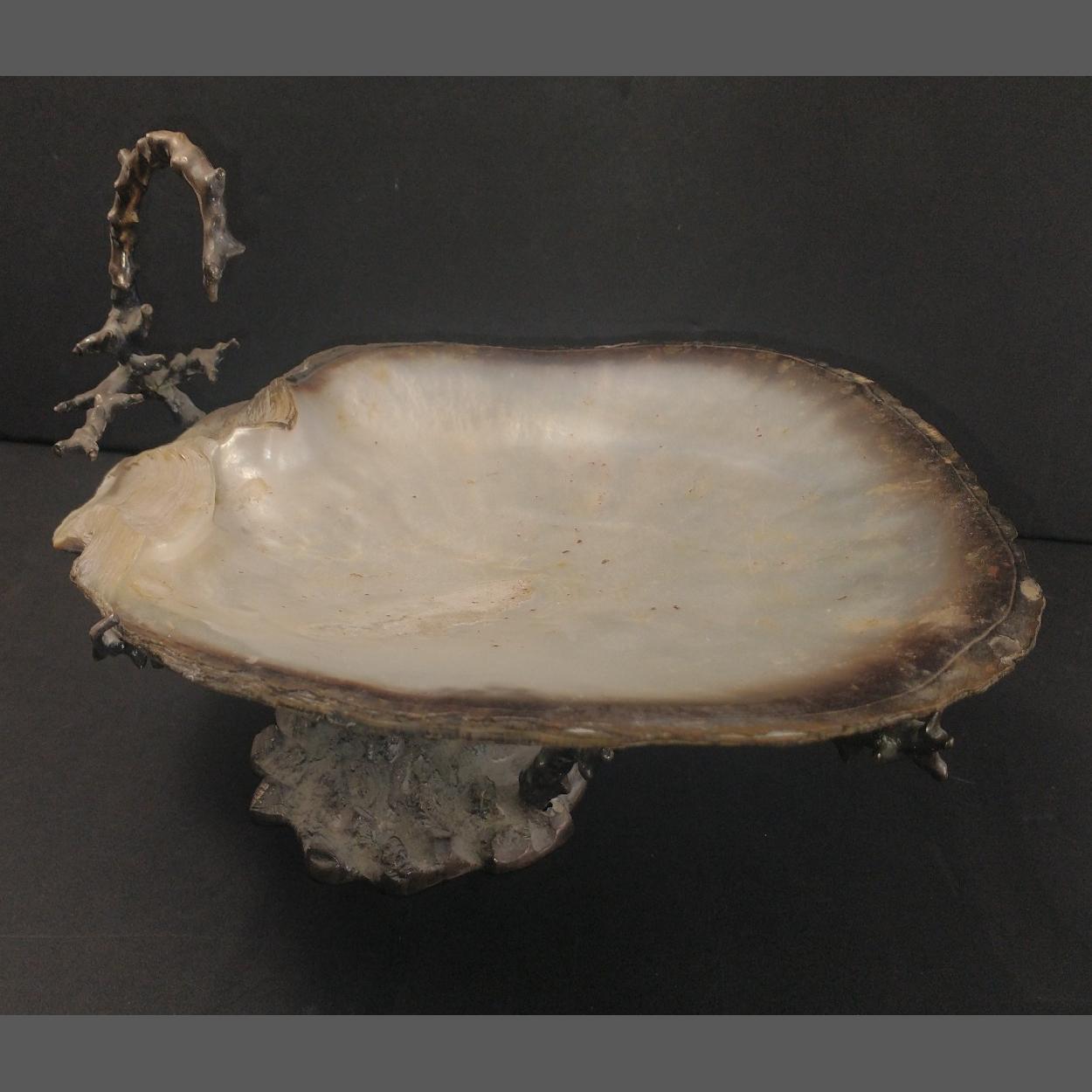 An unusually large ABALONE shell dish on a raised stand approx 30cm x 21cm