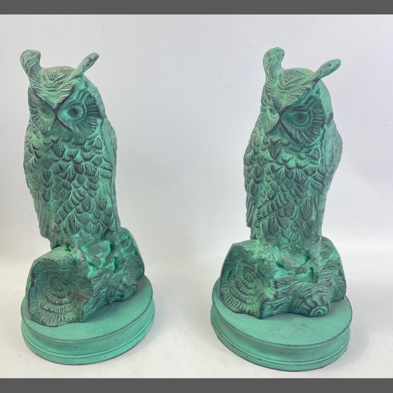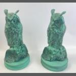 A pair of wise owls with verdigris effect, each standing approx 25cm high