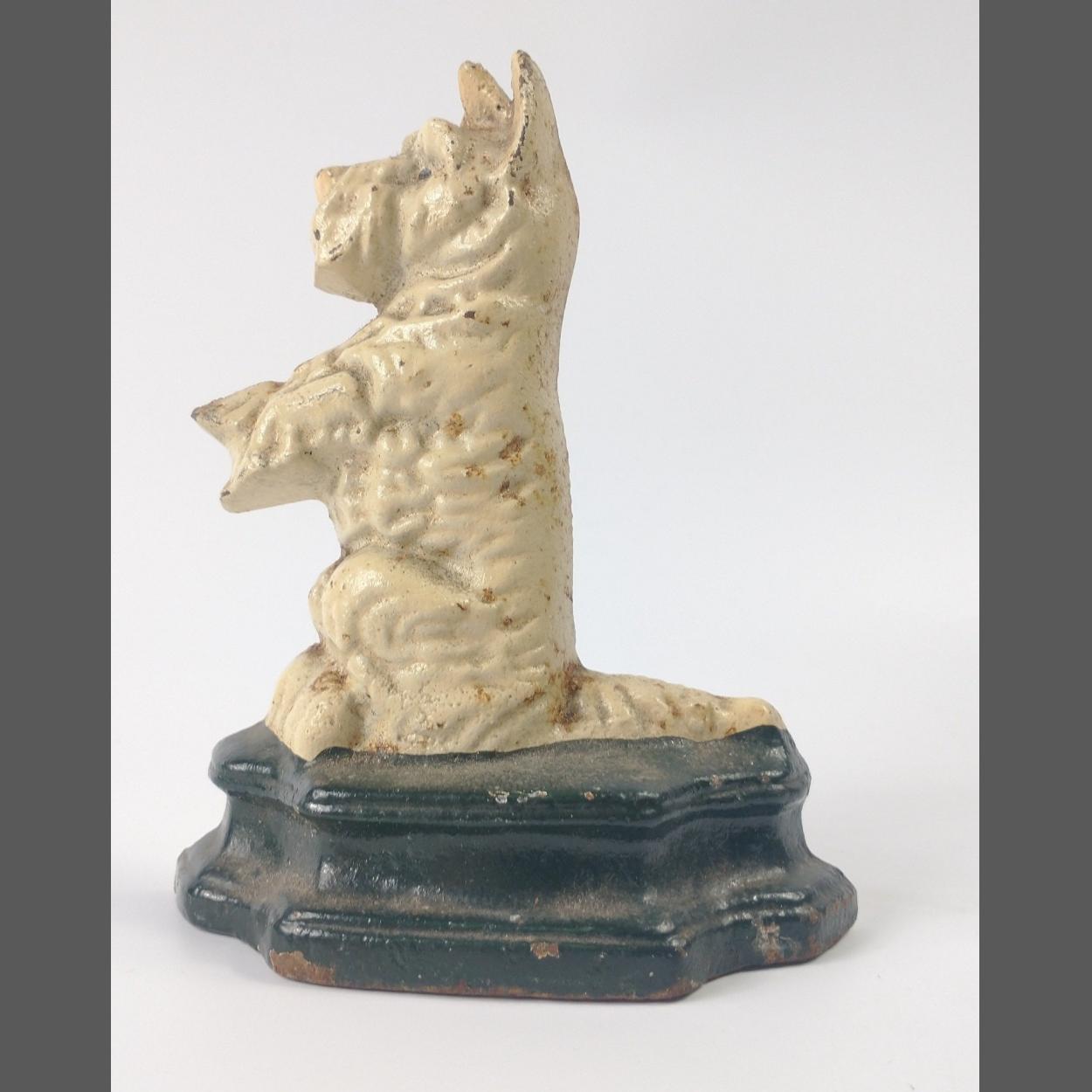 A wee cast iron Scottie dog door stop standing 13cm tall