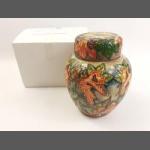 A boxed MOORCROFT Chinese Lantern ginger jar, 16cm high, original price tag reads 'Seconds £241.60'