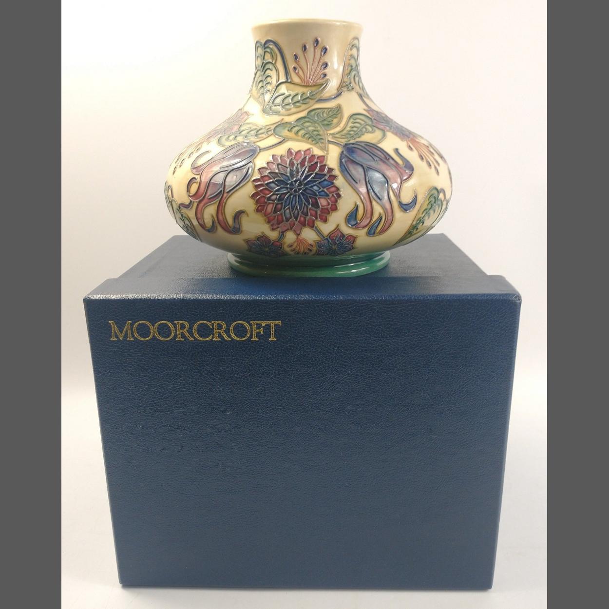 A MOORCROFT Collector's Club, limited edition Chinese Lantern vase (33/50) signed by DEBBIE HANCOCK, stands approx 21cm tall, in original box, no damage