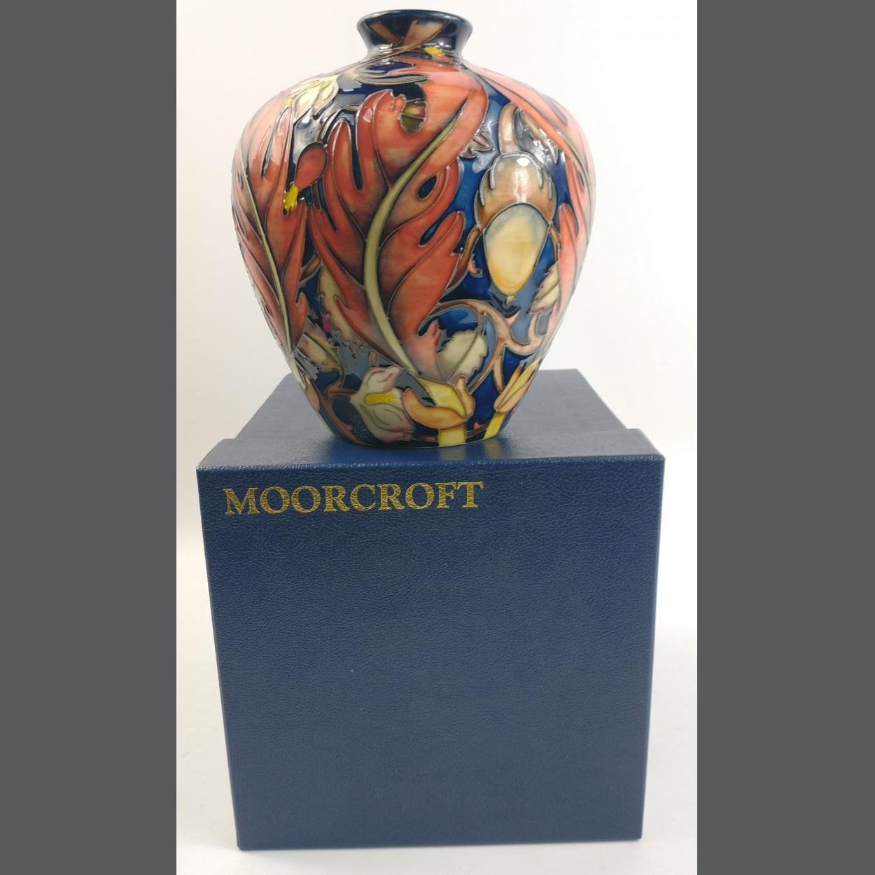 A beautiful MOORCROFT Flame of the Forest vase signed by PHILIP GIBSON 21.8.99, stands 24cm high, no damage