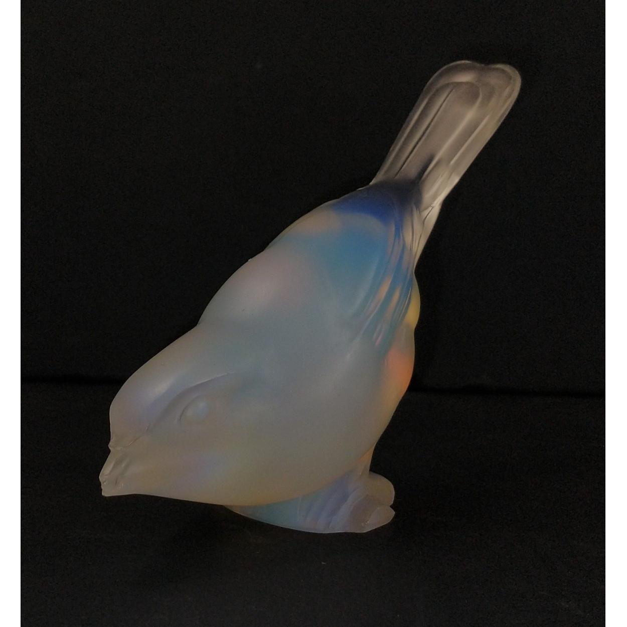 A small ETLING sparrow eating, 13cm long, 9cm high, a small chip from the beak and base