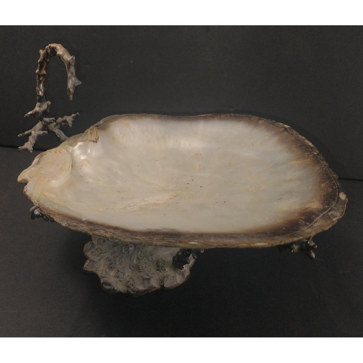 An unusually large ABALONE shell dish on a raised stand approx 30cm x 21cm