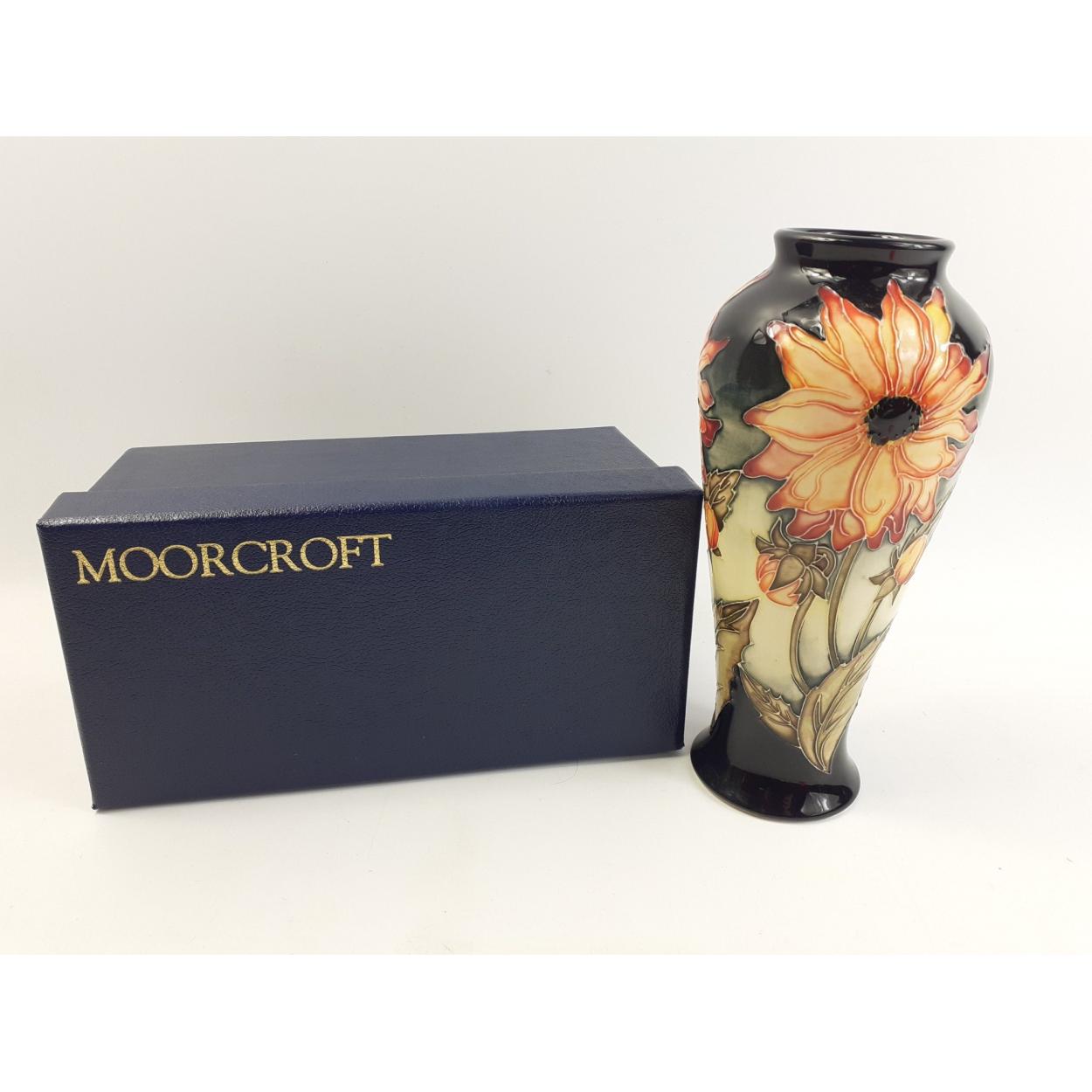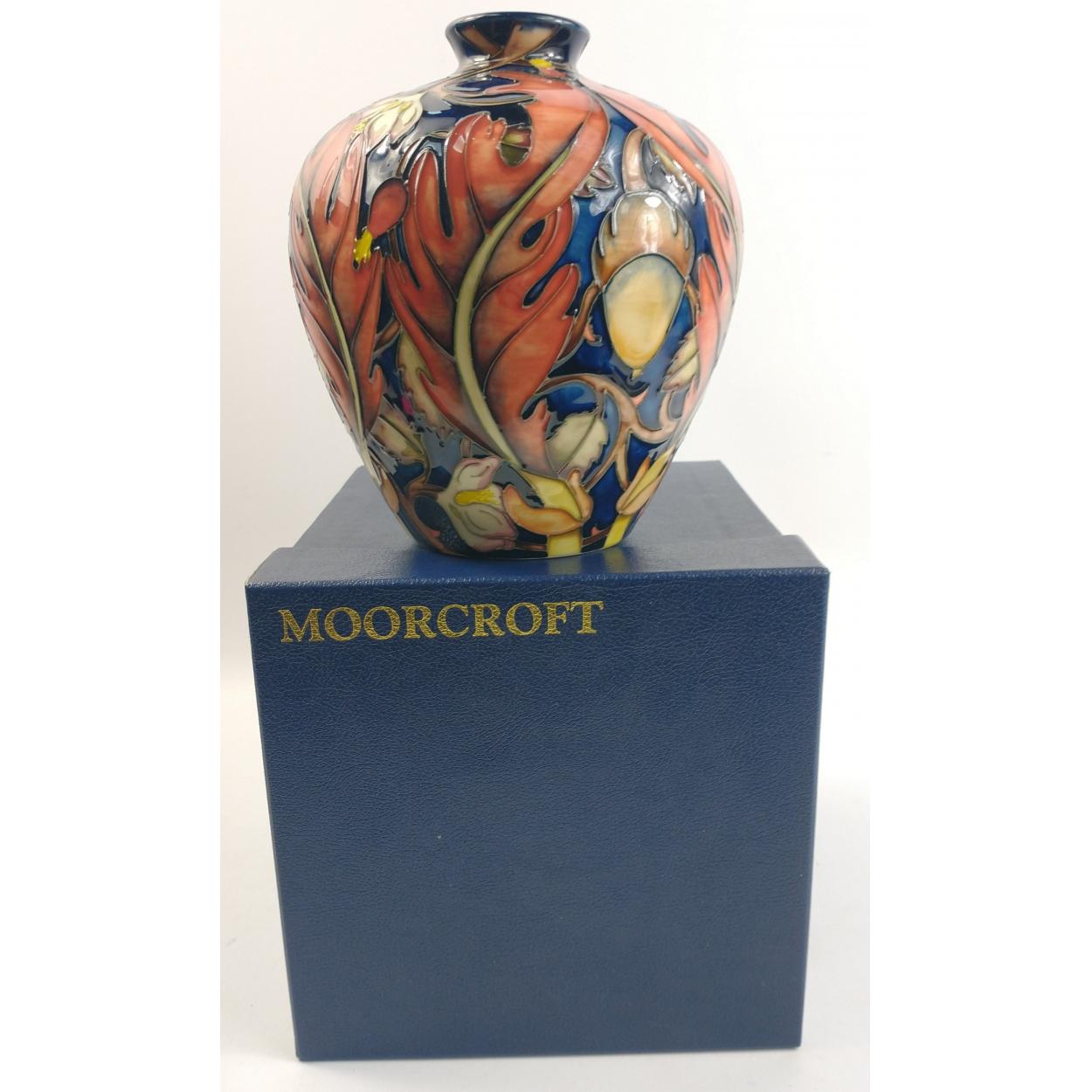 A boxed MOORCROFT trial piece vase dated 4.6.2001, stands approx 18cm high, original price £325