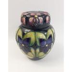 A small MOORCROFT Blue Violet ginger jar, boxed, it stands approx 11cm high, no damage