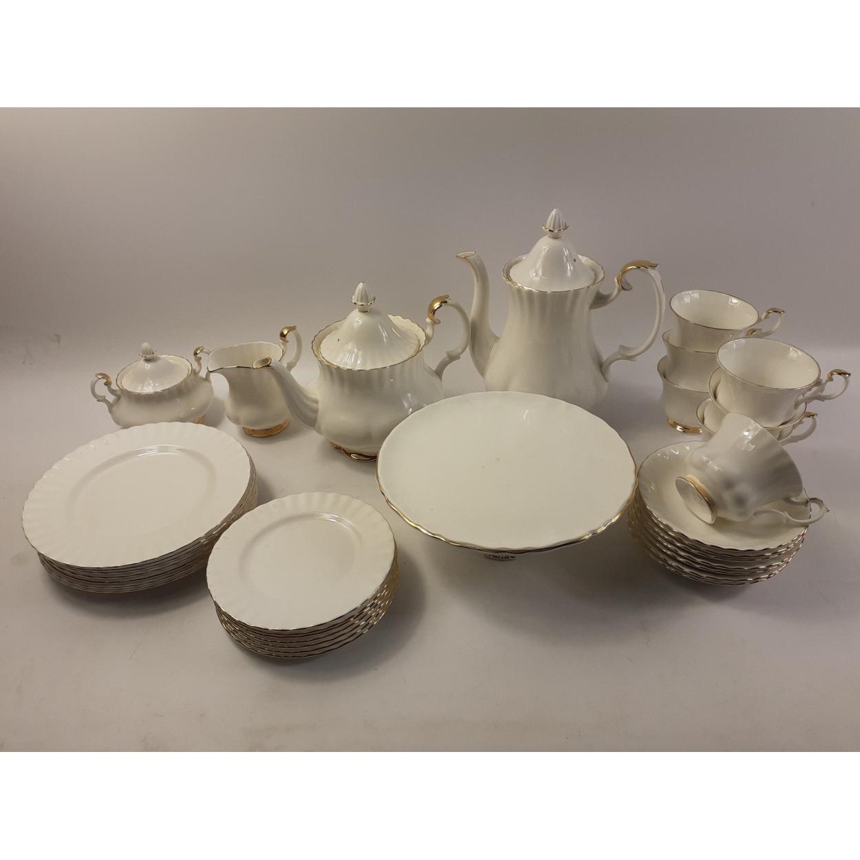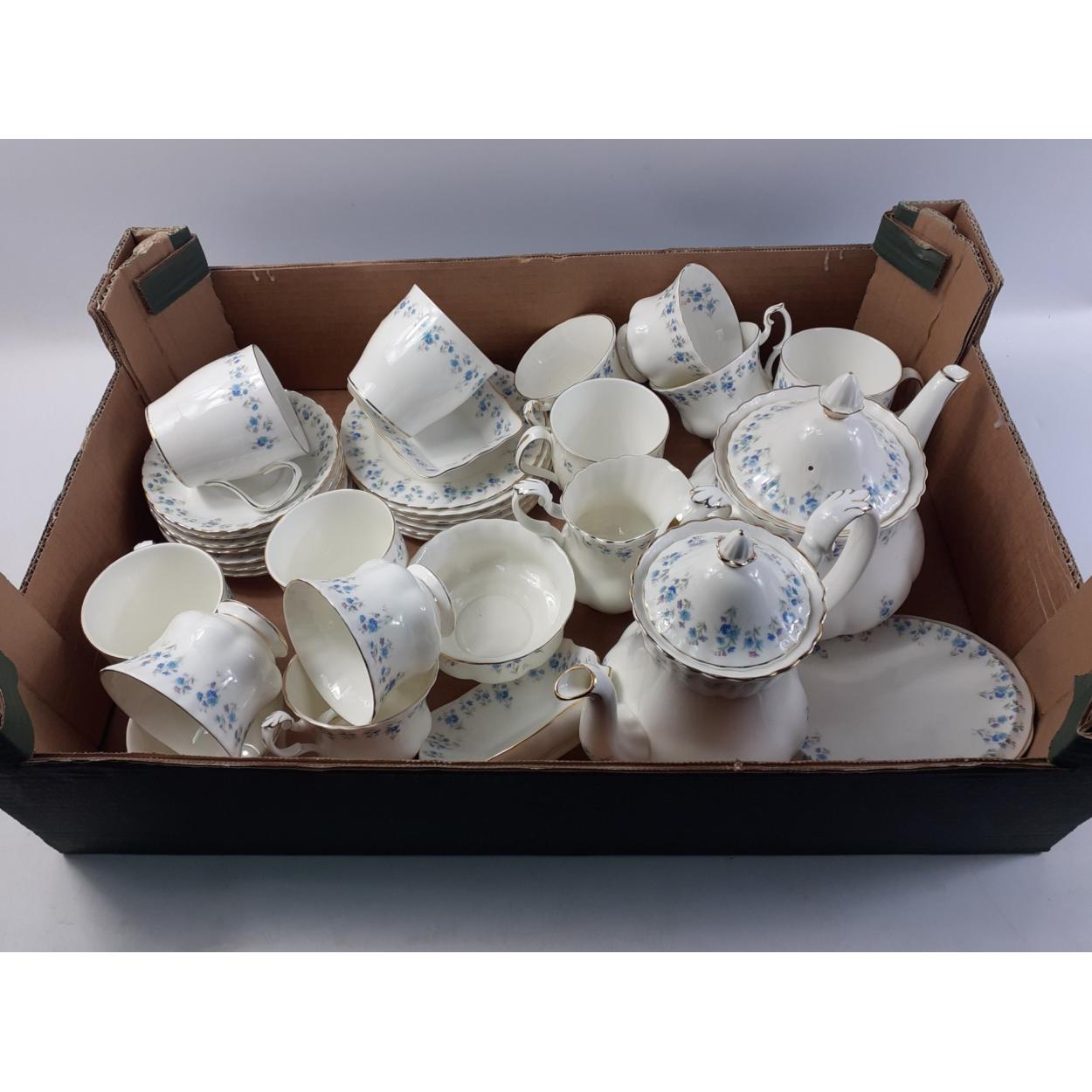 A tea service by ROYAL ALBERT comprising 10 teacups, 12 saucers, 12 side plates 1 milk jug and 1 sugar bowl,