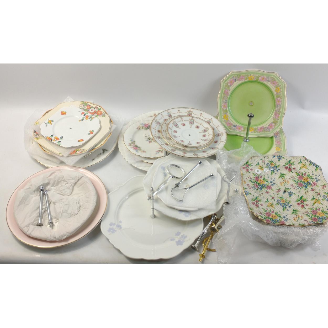 Eight assorted cake plates to include a 3 level ROYAL ALBERT 'Moss Rose', a 2 level ROYAL WINTON 'Nevin',