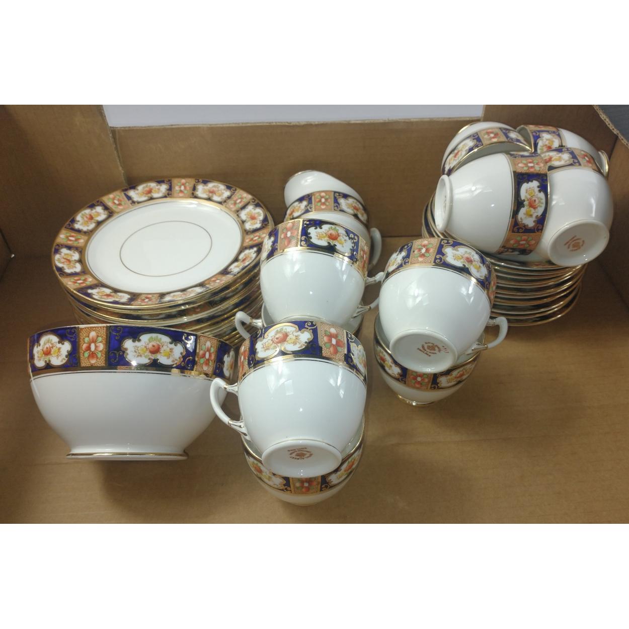 A large Japanese dinner/tea/coffee service to include 6 dinner plates, 3 soup bowls, 6 dessert bowls, 6 side plates, 6 saucers, 6 coffee saucers, 6 teacups, 6 coffee cans, 1 large lidded sugar bowl, 1 small lidded sugar bowl,1 large and 1 small milk jug, 1 coffee pot, 1 teapot, 2 ashets
