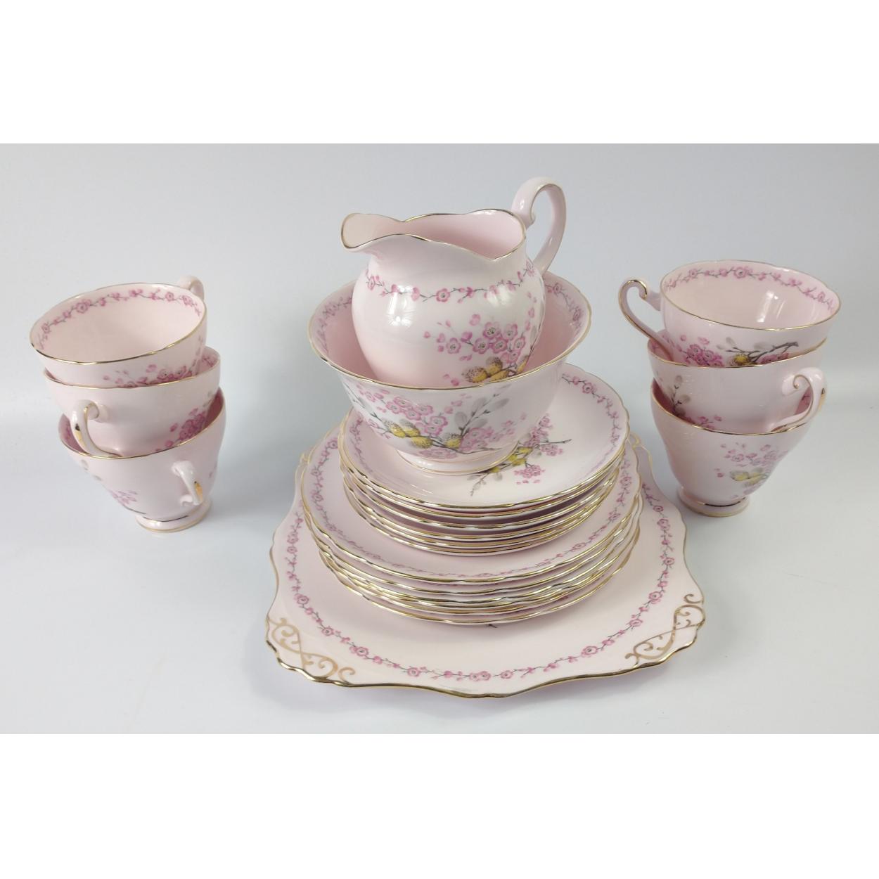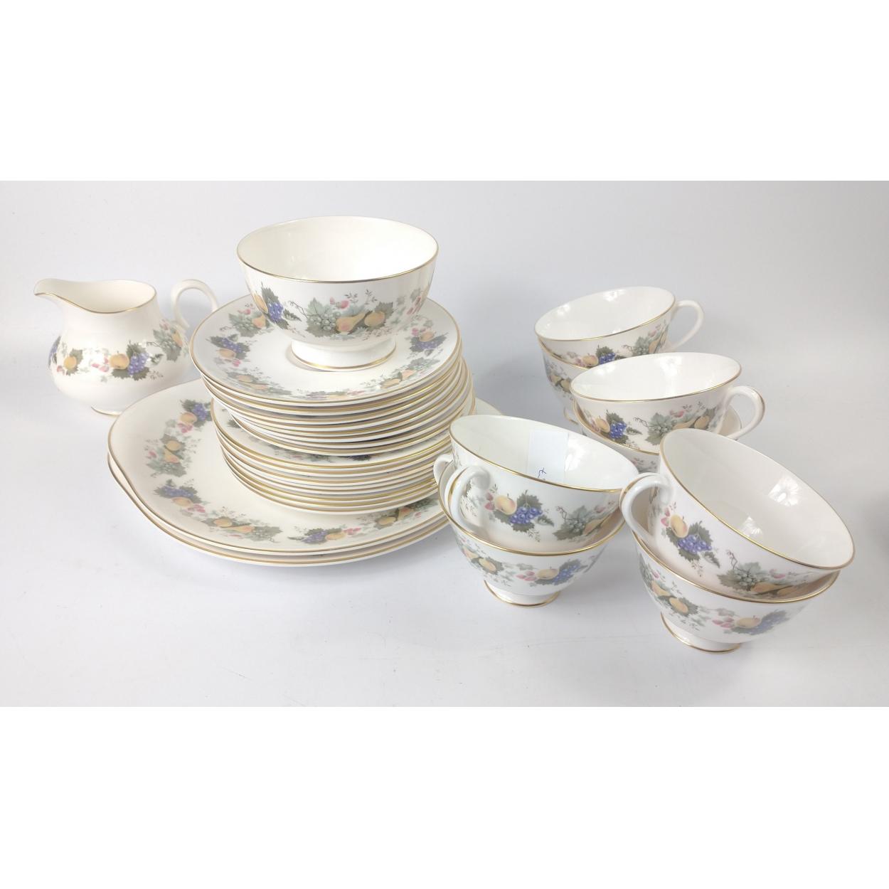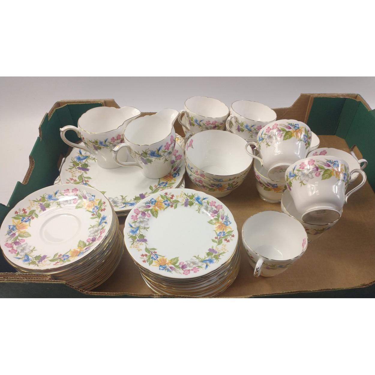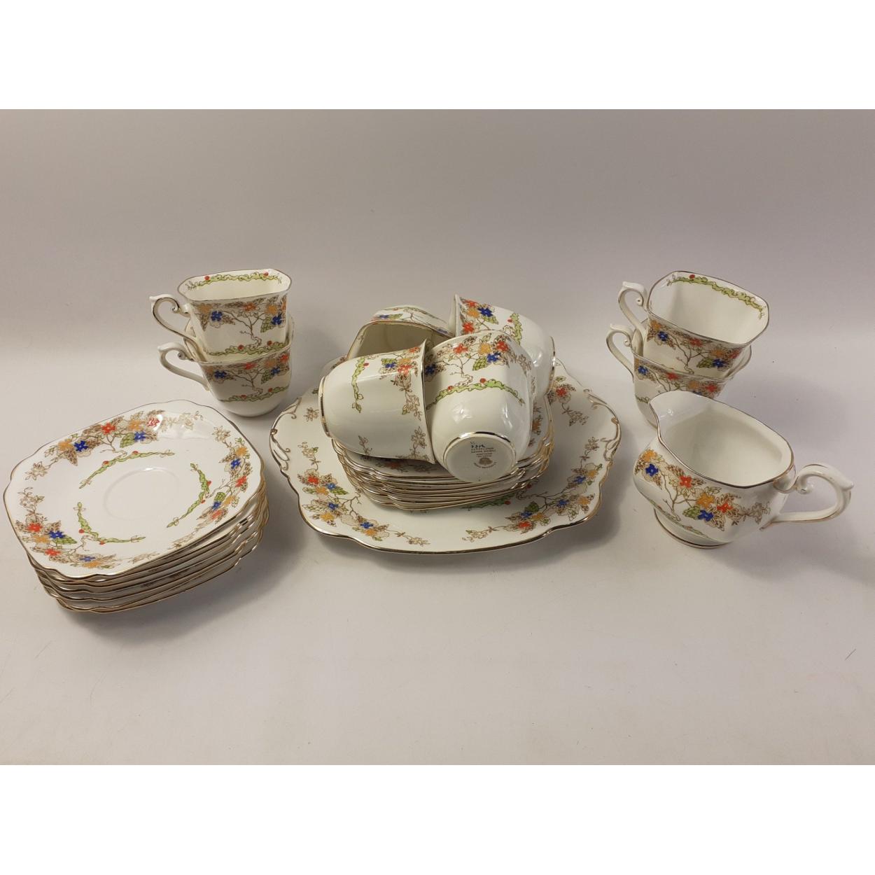 A TUSCAN April Beauty tea service comprising 6 teacups, 6 side plates, 6 saucers, 1 cake plate, 1 milk jug and 1 sugar bowl. In good condition